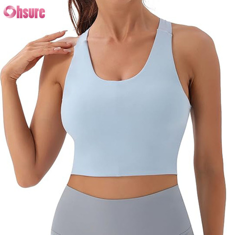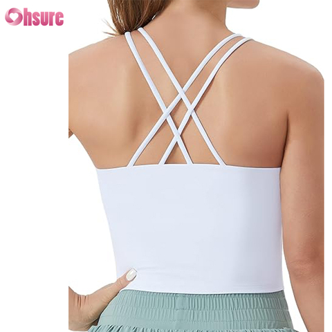 Fashion Soft Nylon Spandex Fabric Women's Cross Back Sports Bra Halter Neck Workout Crop Tank Tops with Removable Pads