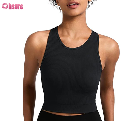 Comfort Rib Nylon Spandex Fabric Women Sports Bra With a Removable Padded with Medium Support