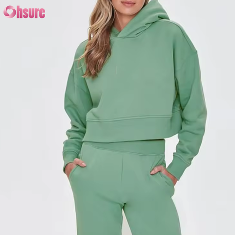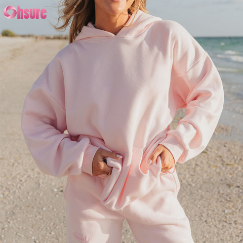 Dệt may thể thao mặc Puff in quá khổ Hoodie và Sweatpants phụ nữ thiết lập giản dị chạy bộ Activewear cho phụ nữ